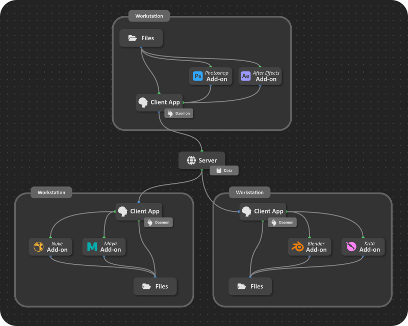 Ramses is extensible. Although it already comes with some add-ons for your creative software, if you have specific needs, you can use the provided Python and Adobe ExtendScript API, to implement your own add-ons which fully integrate with both Ramses and your creative applications. The Daemon and the Server API are also fully documented. And, after all, Ramses is open source!