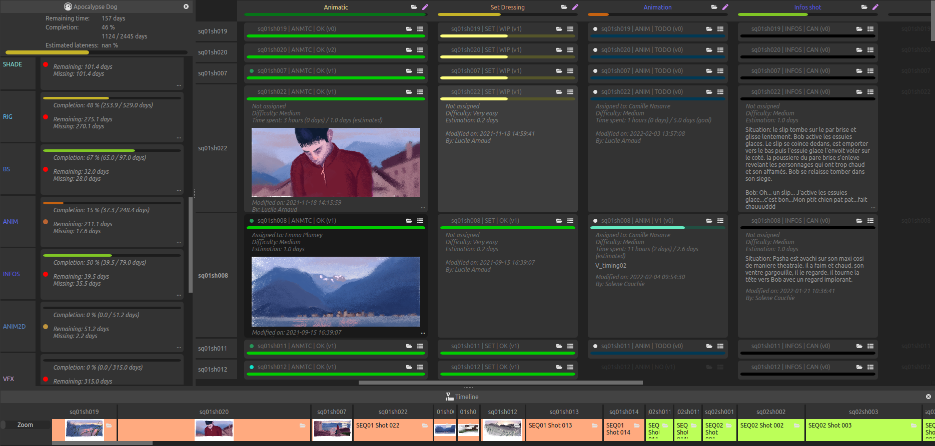 You can always keep a close (or overall) look at the production, and check which assets and shots are longer or shorter to produce, and the state in which they are at any time.