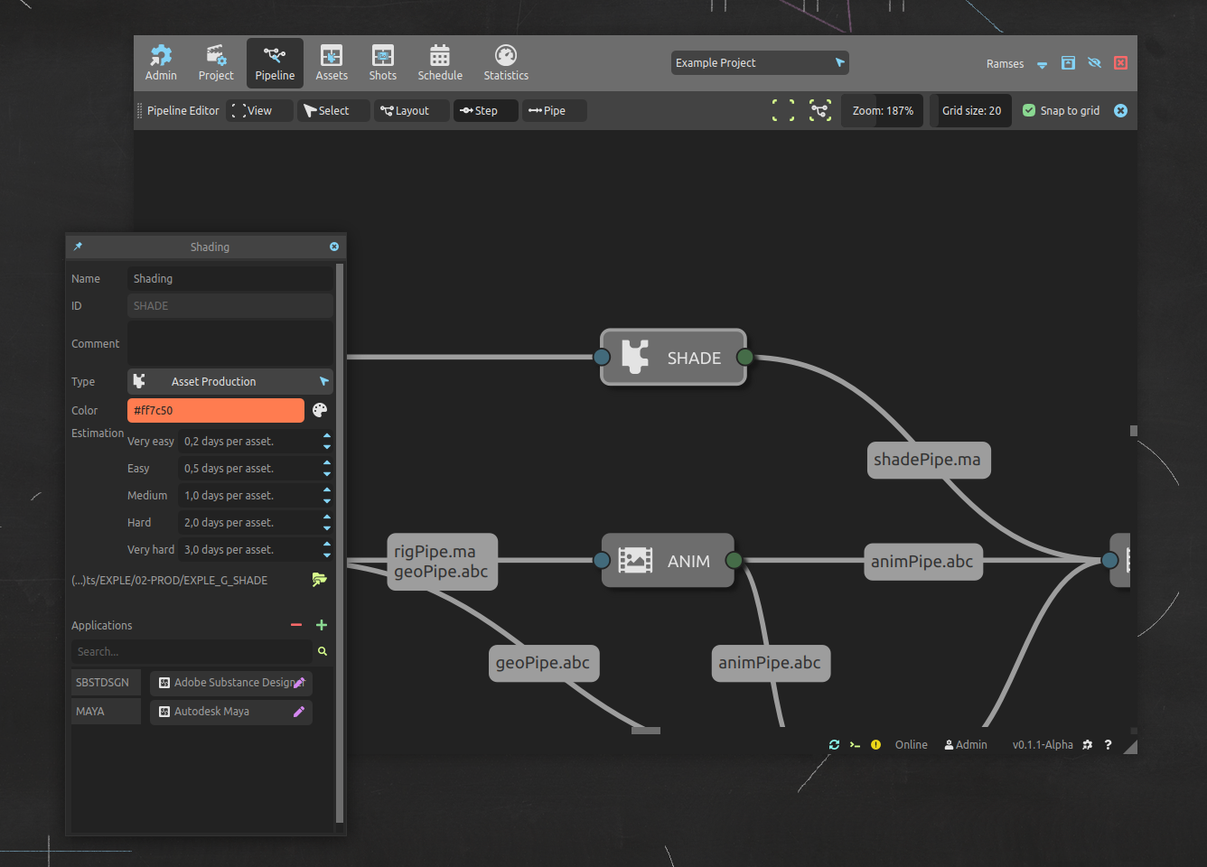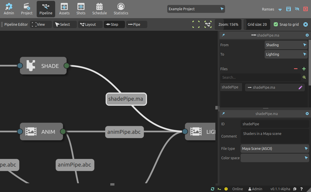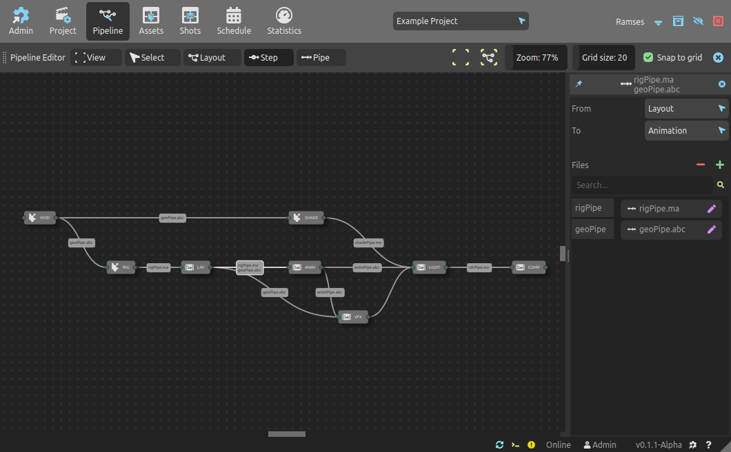 The pipeline panel is accessible only to Administrator and Project administrator users. This is where the project pipeline can be created and edited.
