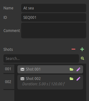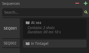 The list on the left lists all the sequences of the project, and you can use the Search field to filter them by name or ID.
