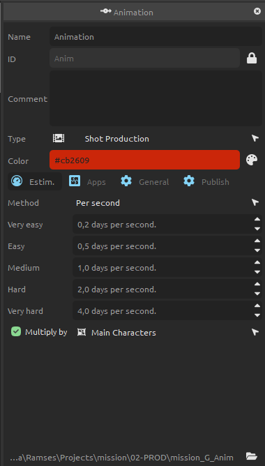 - For Shot Production steps, you can select if the estimation has to be evaluated per shot (for a lighting step where the quantity of work does not depend on the duration of the shot for example) or on the duration, per second (better for the animation step for example).